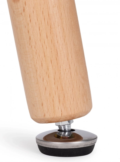 Robuste bøgeben forbindes af en solid metalramme, som sikrer en stabil konstruktion. Justerbare, skridsikre fødder beskytter gulvet mod ridser og muliggør præcis nivellering af bordet. Det minimalistiske look og de tidløse materialer gør det til et praktisk og stilfuldt møbel med bred anvendelse.