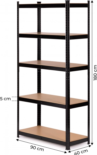 Reolen har fem holdbare hylder, hver med en bæreevne op til 150 kg. Takket være den midterste samler er konstruktionens styrke sikret.