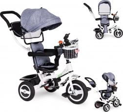 Med mulighed for at tilpasse konfigurationen efter barnets alder og selvstændighed kan kalechen, sikkerhedsbøjlerne og skubbehåndtaget fjernes. Trehjuleren opfylder certificeringerne EN 71 og CE, hvilket garanterer et kvalitets- og sikkert produkt.