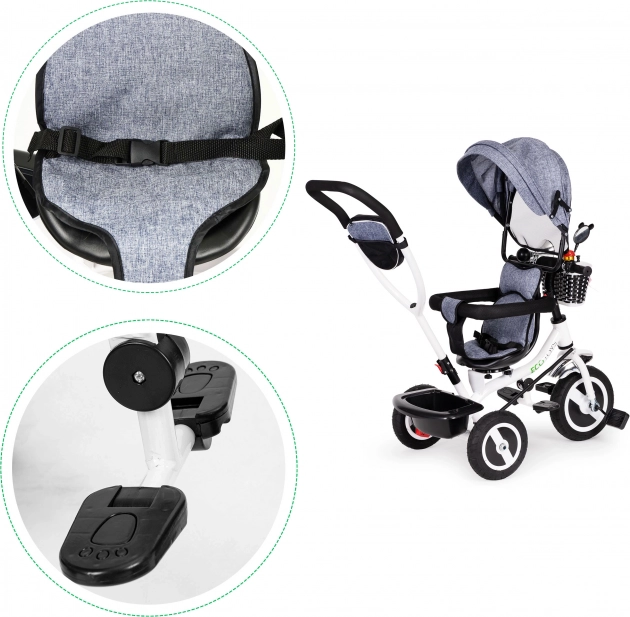 ECOTOYS trehjuler tilbyder mange praktiske løsninger, som sikrer dit barn en behagelig og sikker kørsel.