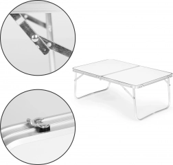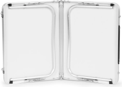Når det er klappet sammen, får bordet form som en kuffert med integreret håndtag. Let at bære og opbevare i bil, campingvogn eller derhjemme.