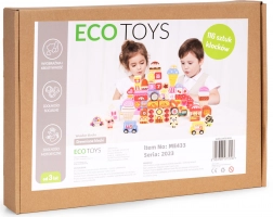 Hver del er lavet af kvalitets træ, forsynet med giftfri, miljøvenlige farver og har glatte, sikre kanter. Der medfølger også en praktisk stofpose til nem opbevaring og transport af klodserne.