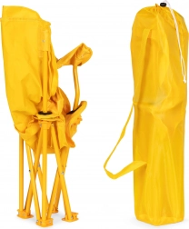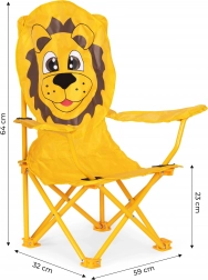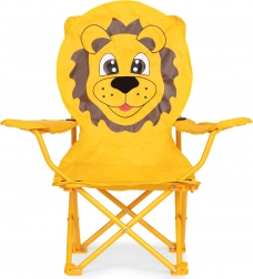 Stolen er lavet med fokus på holdbarhed og børns sikkerhed. Rammen er fremstillet af robuste stålrør, som giver den tilstrækkelig stabilitet og styrke. Det orange betræk med løvegrafik fanger opmærksomheden og vil begejstre enhver tumling. Betrækket er lavet af polyester (600D), yderligere belagt med polyurethan, som er modstandsdygtig over for regn og sol. Takket være dette vil stolen holde i mange sæsoner og hurtigt blive dit yndlingssiddeplads.