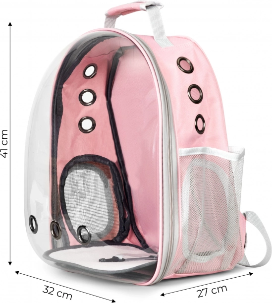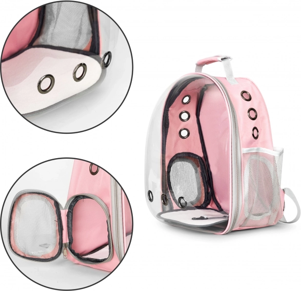 En stilfuld og praktisk kæledyrsrygsæk, der kombinerer en gennemsigtig front for bedre udsyn, effektiv ventilation og ergonomisk design for behagelig rejse. Takket være den holdbare konstruktion, sidelommer og nem vedligeholdelse er den ideel til udflugter, byture og besøg hos dyrlægen.
