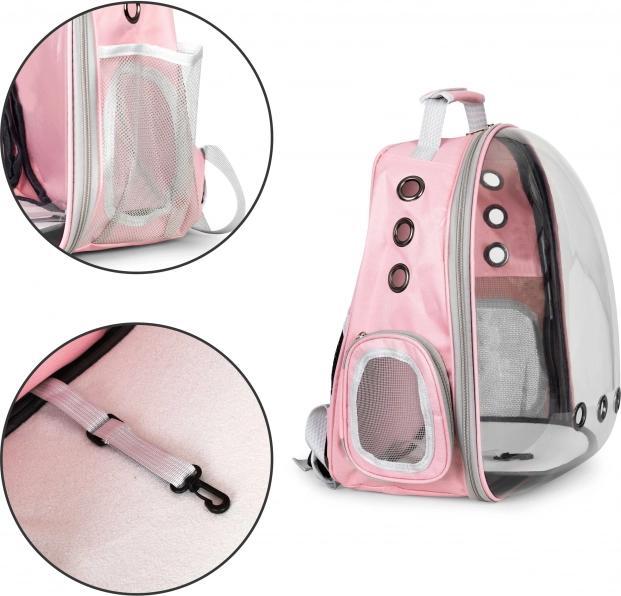 For ejeren er rygsækken behagelig takket være ergonomiske stropper, solid hank og gennemtænkt udstyr: sidelommer til godbidder og småting, side-lynlåsåbning for hurtig adgang til dyret og en let aftørrbar indvendig bund for nem rengøring på hver tur.