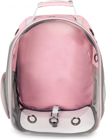 Denne rygsæk-transportør giver dit kæledyr maksimal komfort og sikkerhed på farten. Det forreste, gennemsigtige panel lader dyret følge med i omgivelserne, mens robuste materialer og en indvendig sikkerhedsrem holder alting under kontrol. Flere ventilationsåbninger og netpaneler garanterer en konstant tilførsel af frisk luft.