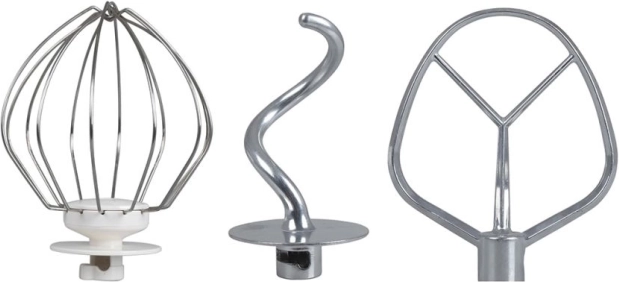 Sættet indeholder dejkrog, K-pisker til blanding og piskeris. Alt tilbehør kan tåle opvaskemaskine for nem vedligeholdelse.