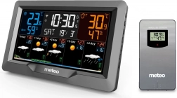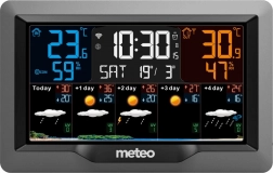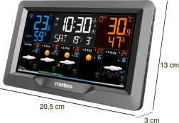 Bevar overblikket over vejret inde og ude. Stationen METEO SP101 viser tydelige piktogrammer og tilbyder takket være Wi‑Fi onlineservice med 5 dages vejrudsigt for din lokation. Den eksterne trådløse sensor med display måler temperatur og luftfugtighed i en rækkevidde på op til 60 m, hvilket gør den ideel til større hjem.