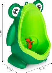 Urinalet er designet specielt til at gøre det nemmere og mere behageligt at lære at bruge toilettet. Det farverige og funktionelle urinal er den ideelle løsning for børn, der begynder deres rejse mod selvstændighed på toilettet. Urinalet i form af en farverig frø fanger enhver drengs opmærksomhed, hvilket gør, at han gerne vil bruge det.