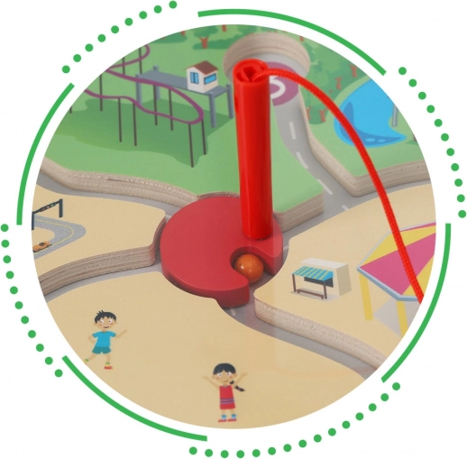 Denne farverige, lærende legetøj giver børn en verden af attraktioner på én plade. Ved hjælp af den magnetiske pen flytter små hænder kuglerne gennem sikkert lukkede spor, hvor de lærer tålmodighed, koncentration og hånd-øje-koordination. Nummererede og farvemarkerede mål guider børn intuitivt til at løse opgaver.