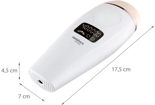 Depiltor IPL Webber er designet til effektiv hårfjerning fra ansigt, armhuler, bikiniområdet, ben og andre dele af kroppen. Takket være IPL-teknologi (Intensivt pulserende lys) rammer det hårfolliklen, hvilket bidrager til permanent hårfjerning. Efter kun 3 behandlinger er huden glat og blød at røre ved.