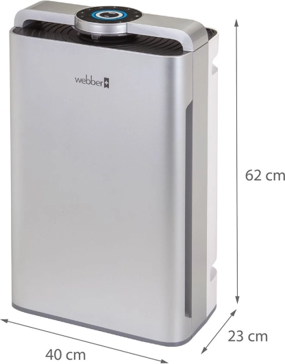 Webber AP9700 Wi‑Fi luftrenser er designet til effektivt at fjerne op til 99,97 % af meget fine partikler PM2.5, vira, bakterier, pollen, støv og dyrehår ved hjælp af et HEPA 13-filter, hvilket sikrer helt ren luft i dit hjem.