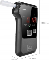 Denne alkoholtester AlcoMax AX9 er ideel til individuel brug. Takket være den avancerede elektrokemiske sensor, der udnytter platinreaktion med ethanolpartikler, giver den høj målepræcision fra 0 til 2‰. Resultatet præsenteres på et overskueligt LED-display.
