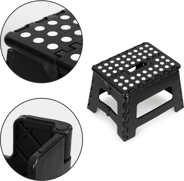 Multifunktionel stol er en fremragende hjælp ved rengøring, i haven eller værkstedet. Børn kan også bruge den for nemmere at nå højere steder. Den er let at folde sammen i en kompakt taske med et behageligt håndtag, hvilket sparer plads ved opbevaring.