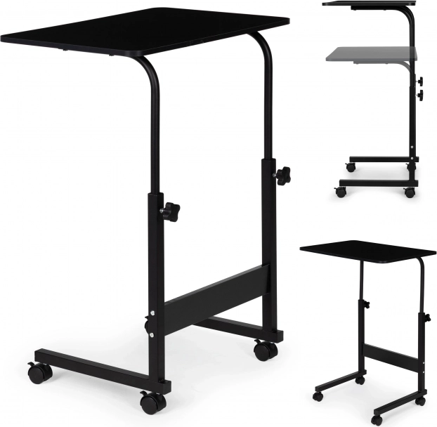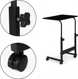 Vi præsenterer en rullevogn til bærbar computer, der kombinerer design og funktion. Ideel til hjemmearbejde eller afslapning med en bærbar computer, tilbyder stabilitet og mobilitet takket være hjulene med låsning.