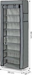 Dette tekstilskab er en ideel løsning til soveværelse, entré og badeværelse. Det fleretagers hyldesystem giver rigelig plads til T-shirts, sweatre, håndtasker og sko, mens det oprullelige tekstilovertræk med lynlås beskytter indholdet mod støv og fugt og giver hurtig adgang til de opbevarede ting.