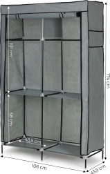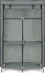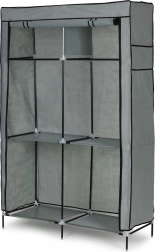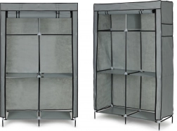 Leder du efter en praktisk løsning til pladsbesparende og overskuelig opbevaring af tøj? Tekstilgarderobeskabet MODERNHOME i elegant grå kombinerer generøs opbevaringsplads med lethed og mobilitet. Takket være 2 garderobestænger og 4 solide hylder kan du nemt opbevare skjorter, kjoler, jakker, sammenlagt tøj og sko.