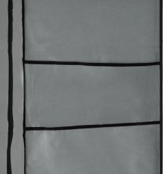 Den forreste afdækning med lynlås kan nemt rulles op og fastgøres for hurtig adgang. Når skabet er lukket, beskyttes tøjet mod støv og fugt, og en sidelomme rummer småting.