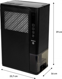 Intuitiv touchbetjening med True Lumos-indikering gør det let at overvåge den aktuelle luftfugtighed og luftkvalitet, mens timer og to hastigheder lader dig tilpasse driften til din tidsplan. Din sikkerhed varetages af automatisk sluk ved fuld beholder samt væltesikring. Et praktisk håndtag og et let vaskbart filter sikrer nem vedligeholdelse.