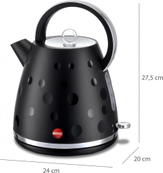 ELDOM-kedlen i sort kombinerer moderne design med høj effektivitet. Med en effekt på 2000 W opvarmer den vand på ingen tid, og volumen på 1,7 liter er ideel til hele familien. Betjeningen er intuitiv – lyskontakten viser driften, og vandstandsmåleren gør det nemt at fylde præcist.