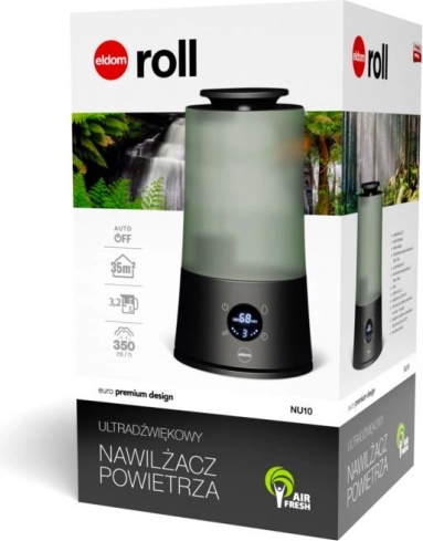 ELDOM NU10 befugter effektivt og forbedrer luftkvaliteten i rum på op til 35 m². Med en ydelse på op til 350 ml/t og en tankkapacitet på 3,2 l kan den køre kontinuerligt i cirka 10 timer på én opfyldning. Intelligent fugtighedsstyring lader dig tilpasse miljøet til dine behov – fra stille nattilstand til hurtig befugtning i dagtimerne.