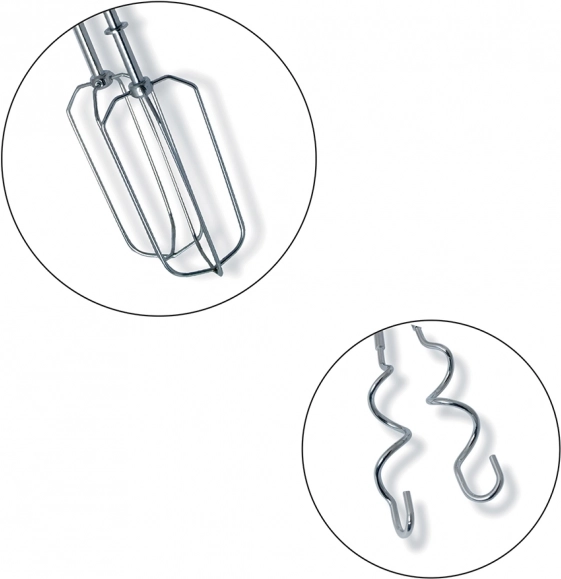 Mikseren kan udstyres med udskiftelige tilbehør til omrøring og piskning. Den klarer uden problemer tilberedning af tungere deje som jule-cheesecake eller påskens gærdej.