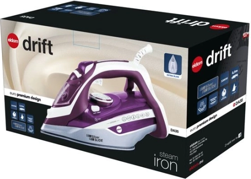 Dampstrygejernet Eldom Drift giver den ideelle kombination af ydeevne og komfort takket være innovative funktioner. Det er udstyret med ANTI DRIP-system, som forhindrer vand i at dryppe, når temperaturen ikke er høj nok til at danne damp. Med keramisk sål sikrer det glat glideevne og effektiv strygning selv af de sværeste folder.