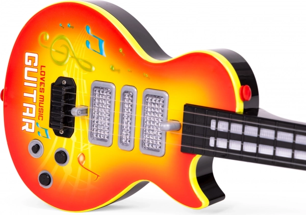 Denne lette og robuste rockguitar til børn er ideel til de første musikalske skridt. Takket være den infrarøde sensor “danser” lyset i takt med fingerens bevægelse over strengene, hvilket motiverer børn til at opdage rytme og grundlæggende spil. LED-bagbelysningen gør spillet ekstra spændende og fremmer kreativiteten.