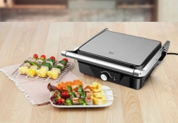 Tilbered saftige steaks i kontaktgrilltilstand, eller åbn pladerne 180° og få en stor plan grillflade til grøntsager, fisk eller spyd.