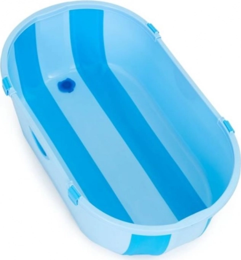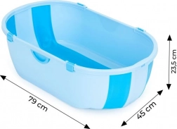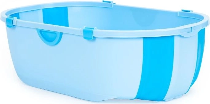 Den robuste ramme og forstærkede plastdele giver stabilitet, og integrerede sidehåndtag gør det lettere at bære og holde under badning. Den glatte overflade er let at rengøre og behagelig mod barnets sarte hud. Badekarret har CE-certificering og er velegnet til daglig brug.