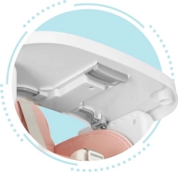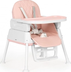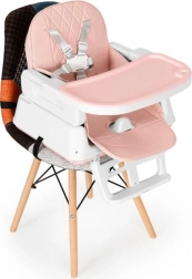 Stolen kan justeres i højden. Du kan nemt afmontere ben og fodstøtte, så højstolen kan omdannes til en lavere stol. Et unikt element ved stolen er sædet, som du kan bruge på en spise- eller køkkenstol. Sættet indeholder specielle stropper til fastgørelse på sæde og ryglæn af en almindelig stol.