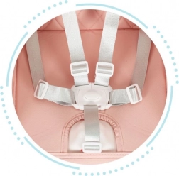 Sædet er udstyret med 5-punkts sikkerhedsseler, hvilket sikrer, at dit barn er korrekt fastspændt, og selerne holder det i den rigtige position.