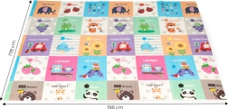 Denne store skummåtte skaber et blødt og sikkert sted til daglig leg, kravlen og de første skridt. Begge sider tilbyder forskellige motiver – veje og by til kreativ kørsel med legebiler og dyr, tal og farver til sjov læring. Takket være de skridsikre teksturer ligger den stabilt på forskellige underlag, og varmeisoleringen beskytter mod kulde fra gulvet.