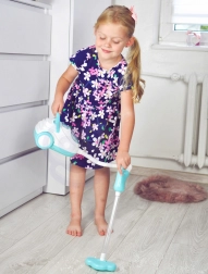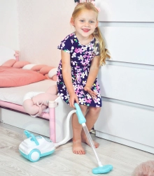 Støvsugeren er fremstillet af holdbar plast og er let, så børnene nemt kan bære den ved det praktiske håndtag. Slangen med mundstykke er op til 80 cm lang, så den er nem at betjene, også for mindre børn. Et åbnbart rum til “snavs” lader børnene se resultatet af deres arbejde og fuldender den autentiske oplevelse.