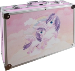 Den stilfulde lyserøde kuffert med enhjørninger rummer et rigt sæt på 144 dele til tegning og maling. Alt har sin plads i overskuelige rum, så du bevarer orden i materialerne og finder hurtigt det, du skal bruge. Sættet understøtter kreativitet, finmotorik og koncentration og giver timevis af sjov ved både individuel og fælles skaben.