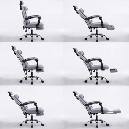 Moderne drejestol med fodstøtte og nakkestøtte, ideel til kontor, direktionskontor eller studieværelse. Nyd komforten under arbejdet takket være det bløde og behagelige materiale. Det ergonomiske design støtter ryggen og gør lange arbejdstimer lettere.