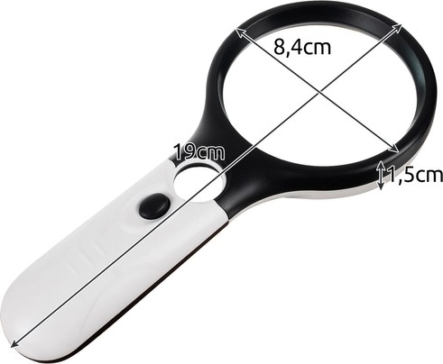 Produceret af holdbare materialer, inkluderer specifikationerne linse-diametre (stor med 70 mm, lille med 15 mm), drevet af tre AAA batterier (ikke inkluderet i pakken) og vejer kun 118 g. Dette forstørrelsesglas er også en fremragende gave til ældre såvel som børn - mens ældre får let ved at læse, kan børn bruge det til at udforske naturlige detaljer.