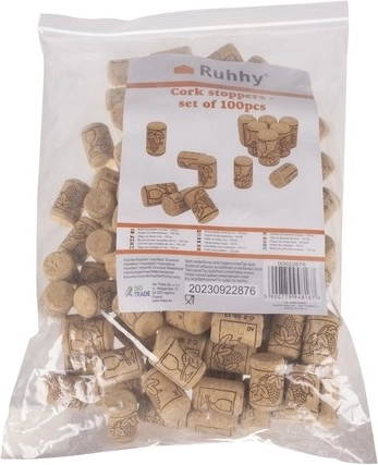 Dette sæt indeholder 100 kvalitets korkpropper beregnet til at forsegle og bevare vin. Fremstillet af naturligt korktræ, garanterer disse propper høj kvalitet og pålidelig forsegling, hvilket forhindrer luftindtrængning i flasken og sikrer, at vinen bevarer sin aroma og smag.