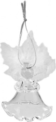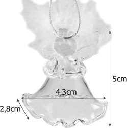 Et sæt engle af klart glas med fjerede vinger, der bringer detaljeret æstetik og finesse. De er ideelle som pynt på juletræet.