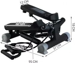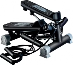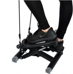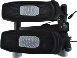 Kompakt hjemme-stepper til effektiv cardio og formning af figuren. Takket være den skrå (twist) bevægelse styrker du ben og baller, de medfølgende træningselastikker aktiverer overkroppen, og den LCD-skærm viser løbende tid, antal skridt, kalorier og kadence. Justerbar modstand, skridsikre pedaler og gummifødder for stabilitet og beskyttelse af gulvet.