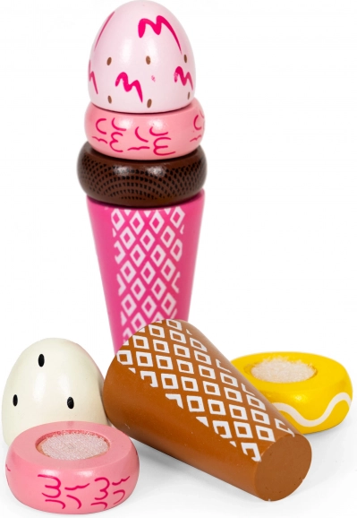 Træ-is sættet er en fantastisk berigelse af ethvert børneunivers. Med elementer, der kan sættes sammen ved hjælp af speciel velcro, kan børn skabe deres egne unikke isdesserter, hvilket udvikler deres kreative evner og formgenkendelse. Hver del er omhyggeligt fremstillet af holdbart træ, hvilket sikrer både æstetisk og langvarig legeværdi. De anvendte farver er sikre for børn.