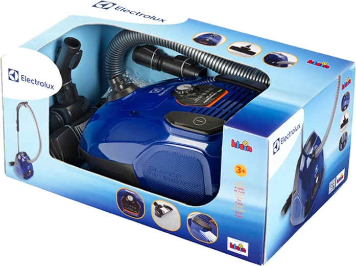 Realistisk legetøjsstøvsuger fra ELECTROLUX i elegant blå farve, som giver børn fra 3 år masser af sjov, når de efterligner rengøring. Den tilbyder ægte sugefunktion til lette perler, autentiske lydeffekter, praktiske hjul, bærehåndtag og “effekt”-indstilling med drejeknap – alt sikkert tilpasset børnehænder.