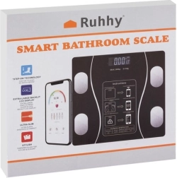 Bevar overblikket over din form med den intelligente vægt RUHHY. Takket være fire præcise sensorer og Bluetooth-forbindelse får du en detaljeret kropsanalyse direkte på telefonen. Glasplatformen af hærdet glas i elegant sort passer ind i ethvert badeværelse og giver sikker og stabil måling op til 180 kg.