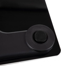 Stilfuld sort platform af 0,3 cm hærdet glas bærer op til 180 kg og giver stabil og sikker brug på badeværelset.