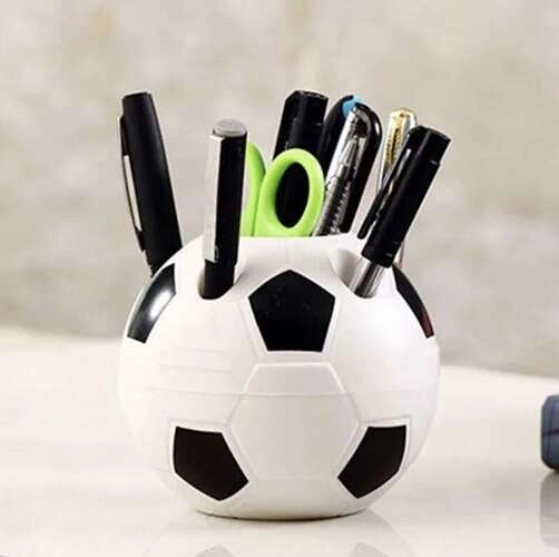 En stilfuld skrivebordsorganizer formet som en fodbold vil glæde enhver fan. Takket være hovedåbningen og 5 ekstra mindre åbninger holder den orden på skrivebordet og giver plads til dokumenter, blyanter, sakse og småting. Det aftagelige låg gør rengøring og vedligeholdelse nem.