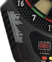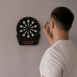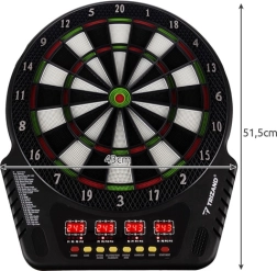 Den elektroniske TRIZAND-dartskive er et fremragende valg for både begyndere og øvede. Den robuste konstruktion og præcis registrering af træffere sikrer retfærdige resultater, mens LCD-skærmene tydeligt viser spilforløb og score for spillere og hold. Med 27 indbyggede spil og op til 243 konfigurationer keder du dig aldrig.