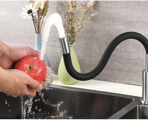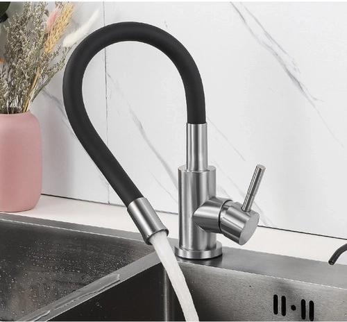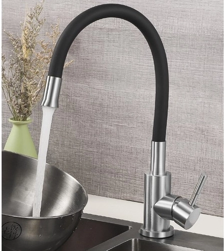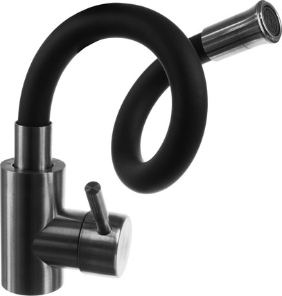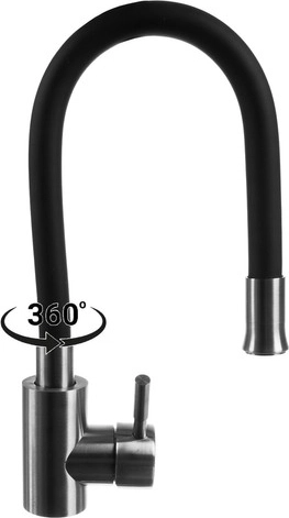 Dette designarmatur kombinerer fleksibilitet og holdbarhed til daglig brug i køkkenet. Den elastiske slange beholder den indstillede form, giver præcis styring af vandstrålen, og med den 360° drejelige hals når du nemt alle hjørner af vasken. Satinbørstet rustfrit stål og kvalitetssilikone modstår pletter, misfarvning og høje temperaturer.