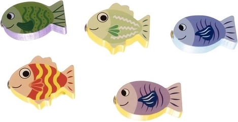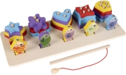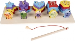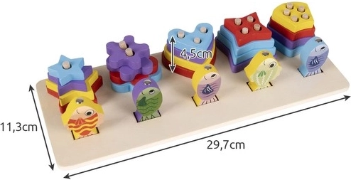 Sorteringskassen indeholder fem former, og den første række er beregnet til fiskespillet, som udvikler evnen til koncentration.