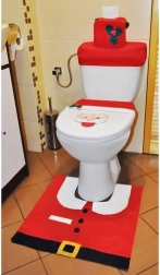 Humoristisk design med julemandsmotiv vil give dit badeværelse en festlig og venlig atmosfære.