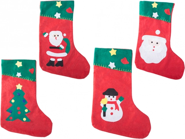 Hver strømpe er pyntet med legende applikationer med motiver af Julemanden, snemand eller juletræ, som lyser rummet op og glæder både børn og voksne. Ideel som gaveindpakning og som en fast del af julepynten.